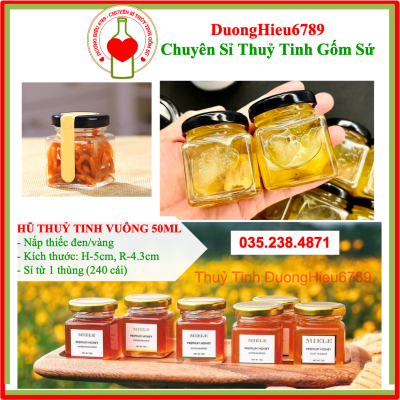 Hũ Vuông Thủy Tinh Đựng Mật Ong, Gia Vị, Thực Phẩm 50ml